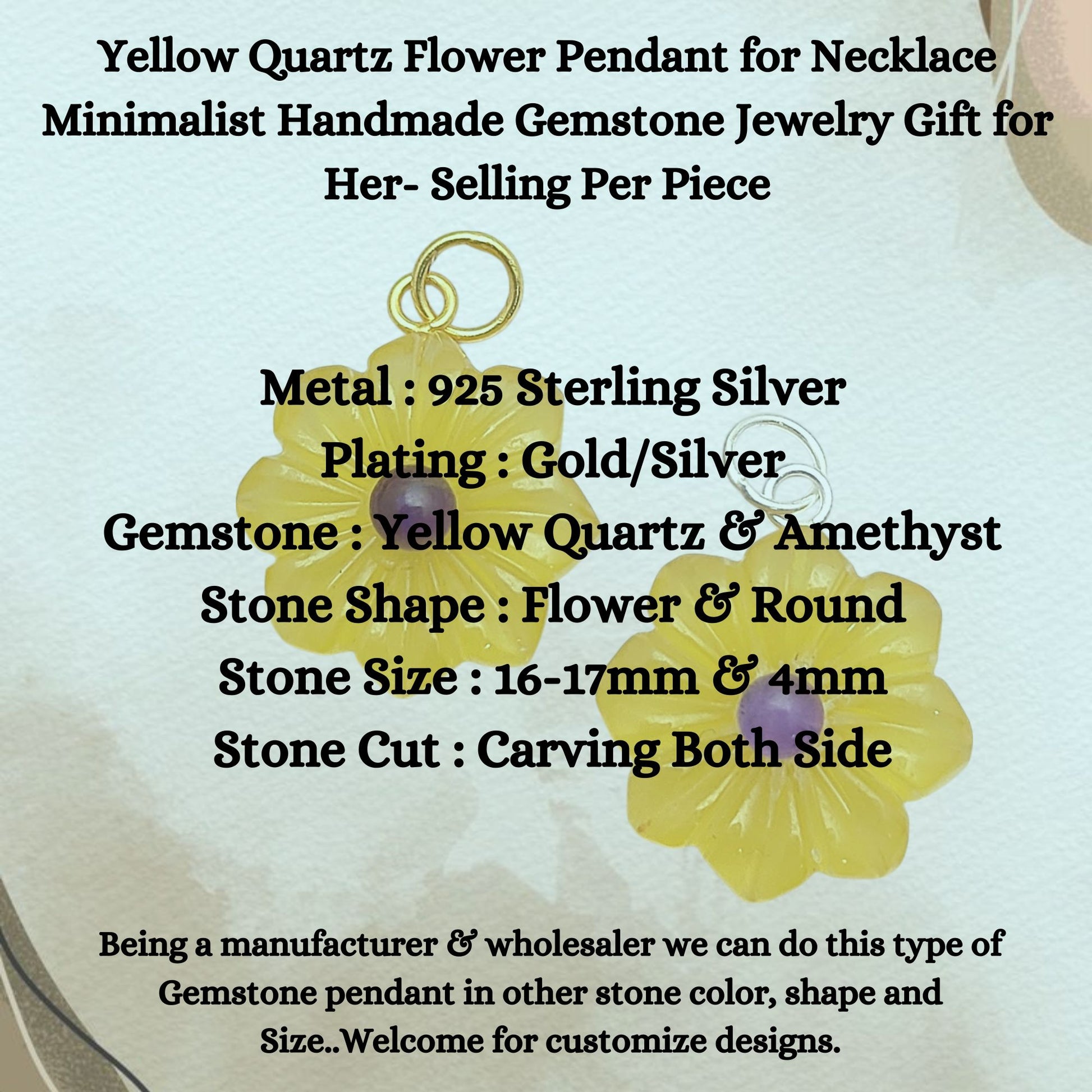 Yellow Quartz Flower Pendant for Necklace Minimalist Handmade Gemstone Jewelry Gift for Her- Selling Per Piece
